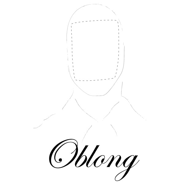 An oblong face is longer than it is wide and has a long straight cheek line.